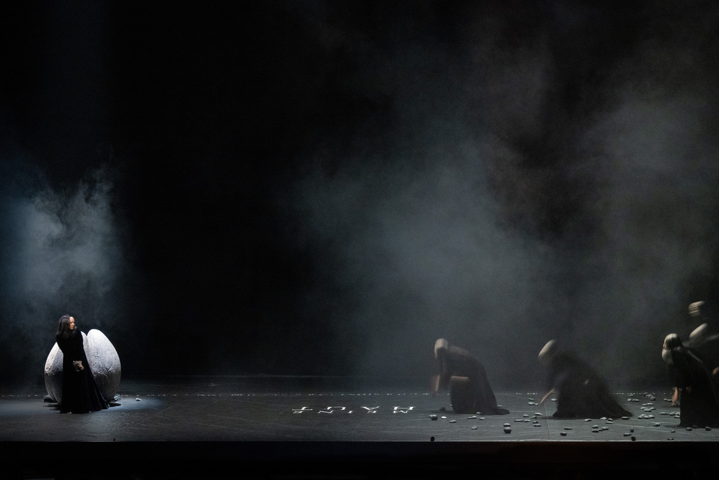 В этом спектакле режиссёр Ромео Кастеллуччи раскрывает глубокую связь между двумя произведениями при помощи контраста между внутренним состоянием и могучими внешними проявлениями.