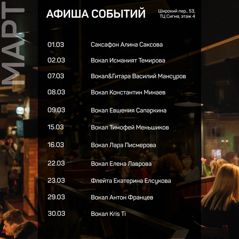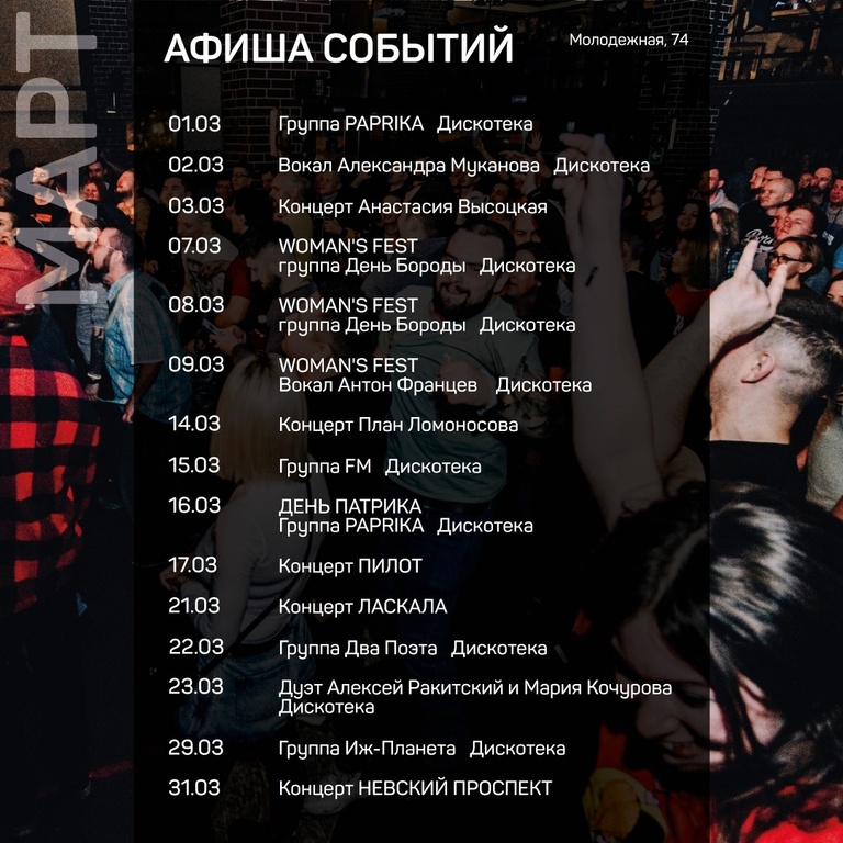 Пабы «Пинта» предлагают афишу на март.