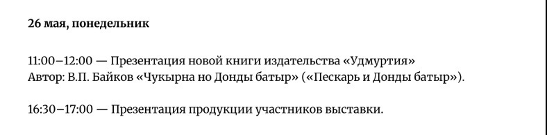 В программе ярмарки — встречи с писателями, издателями, иллюстраторами, артистами, а также подведение итогов всероссийского фестиваля-конкурса «Книга года на родине П.И. Чайковского».
