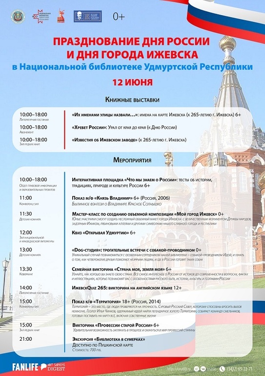 12 июня Национальная библиотека приглашает на мероприятия, посвящённые дню России и Дню города.