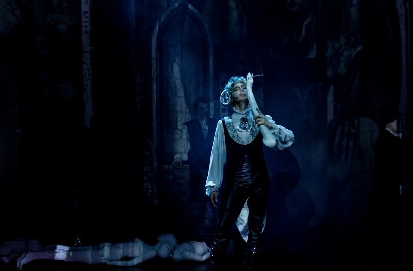 Мультимедийные декорации, фантазийные костюмы, не привязанные к какому-либо времени, погрузят зрителя в мистический мир, где действуют странные силы и обитают таинственные персонажи. Замок Мефистофеля, холодный Петербург, блестящий бал — и над всем этим часы, неумолимо отмеряющие время.