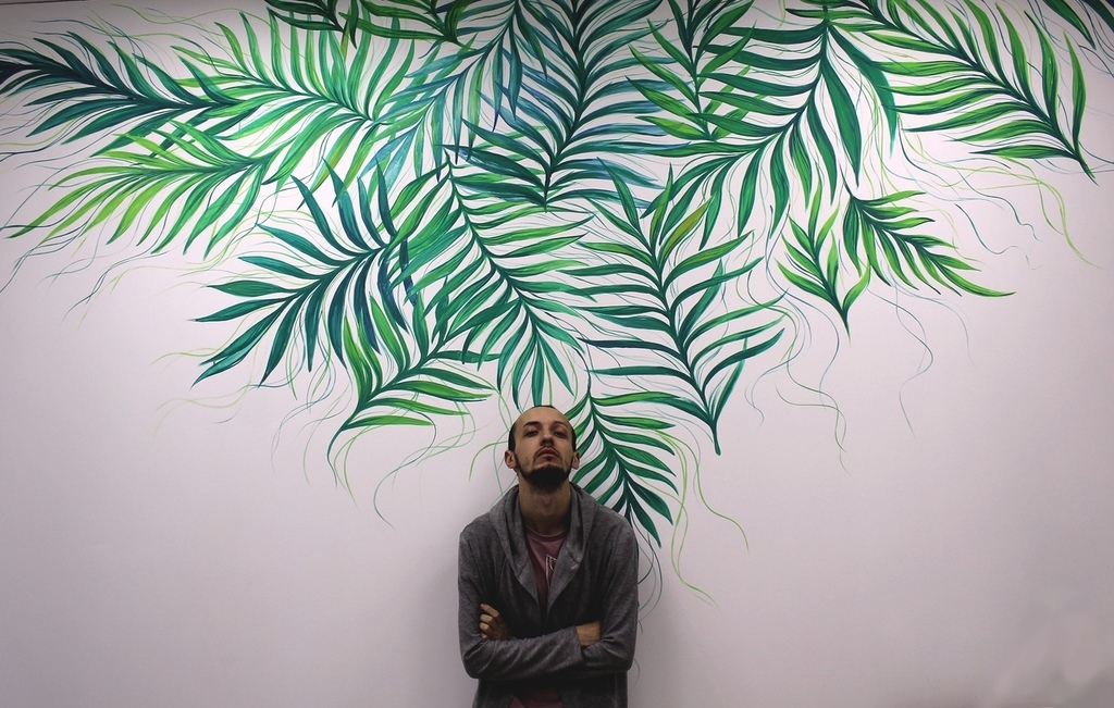 Как-то мне друг скинул фотографию говорит: «Смотри, это же на одежде нарисовано». И попросил меня тоже что-нибудь нарисовать. Мы купили самую дешёвую кофту, краски по ткани. И я помню, что первую свою работу я делал двенадцать часов. Я сейчас смотрю на неё и думаю: «что ты там делал столько времени?».