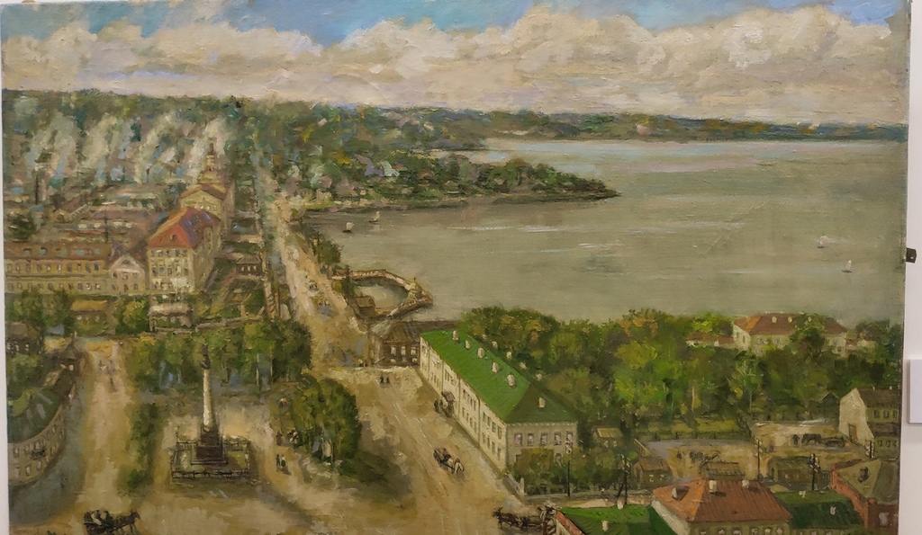 Одна из работ художника, написанная маслом в 2009 году, — «Старый город. Ижмаш. ХIХ в. Плотина.» — будто окунает зрителя в атмосферу города, вызывает желание вернуться в те времена, пройтись мимо зданий и вдоль пруда, изображённых на полотне.
