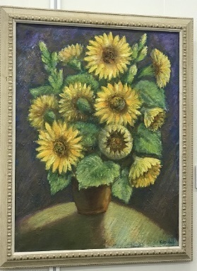 Картина «Солнце в кувшине» (холст, масло) навеяла воспоминания о летних беззаботных днях. Изображённые на ней подсолнухи — как маленькие солнца, которые согревают душу своими красками.