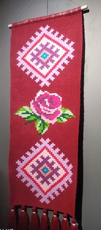 Девушка с особым трепетом и любовью относится к своей семье и одну из своих работ посвятила бабушкам. Работа «Посвящение моим нэнэйкам» изготовлена из шерсти, акрила и клёна в 2023 году.